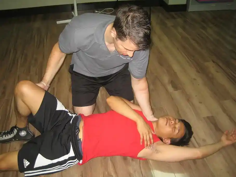 The recovery position is taught to participants enrolled in first aid and CPR training courses in Edmonton. Office Workers